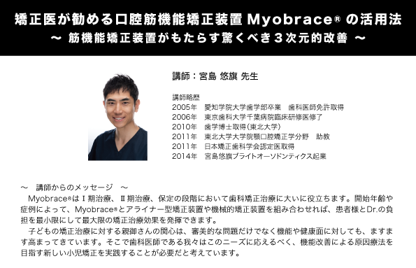 宮島 悠旗 先生講習会 -矯正医が勧める口腔筋機能矯正装置Myobrace®の活用法- |