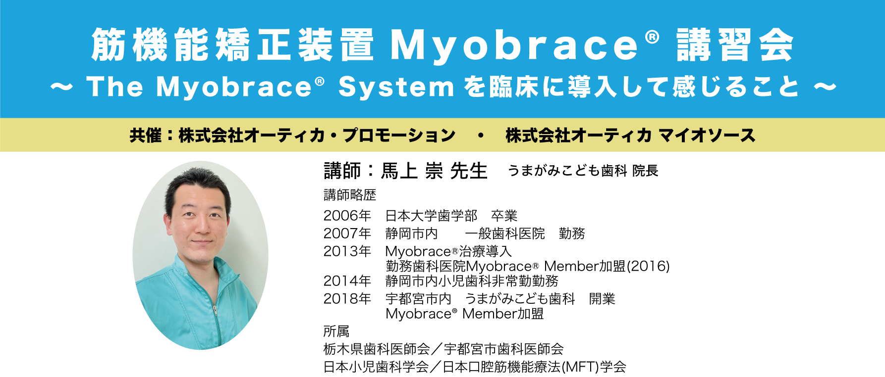 このMyobrace治療において何が大切か、どのように導入するのか、またMyobrace導入後に臨床で起こりうる出来事への対応、そしてなぜ Myobrace Systemと呼ばれるのか、基本的な内容を中心に私自身の経験や症例、デモンストレーションを交えてお伝えいたします。